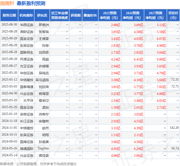 太平洋证券股份有限公司夏芈卬,王子钦近期对指南针(300803)进行研究并发布了研究报告《指南针2025年中报点评:充分受益市场回暖,加速构建“一体两翼”格局》,给予指南针买入评级。